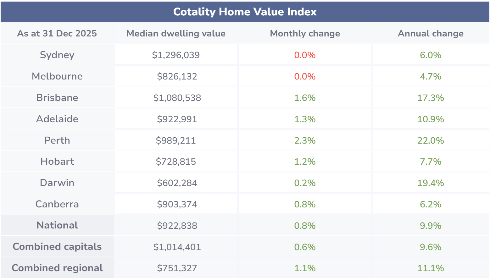 Disclaimer: The information enclosed has been sourced from Cotality and the Reserve Bank of Australia and is provided for general information only. It should not be taken as constituting professional advice.
