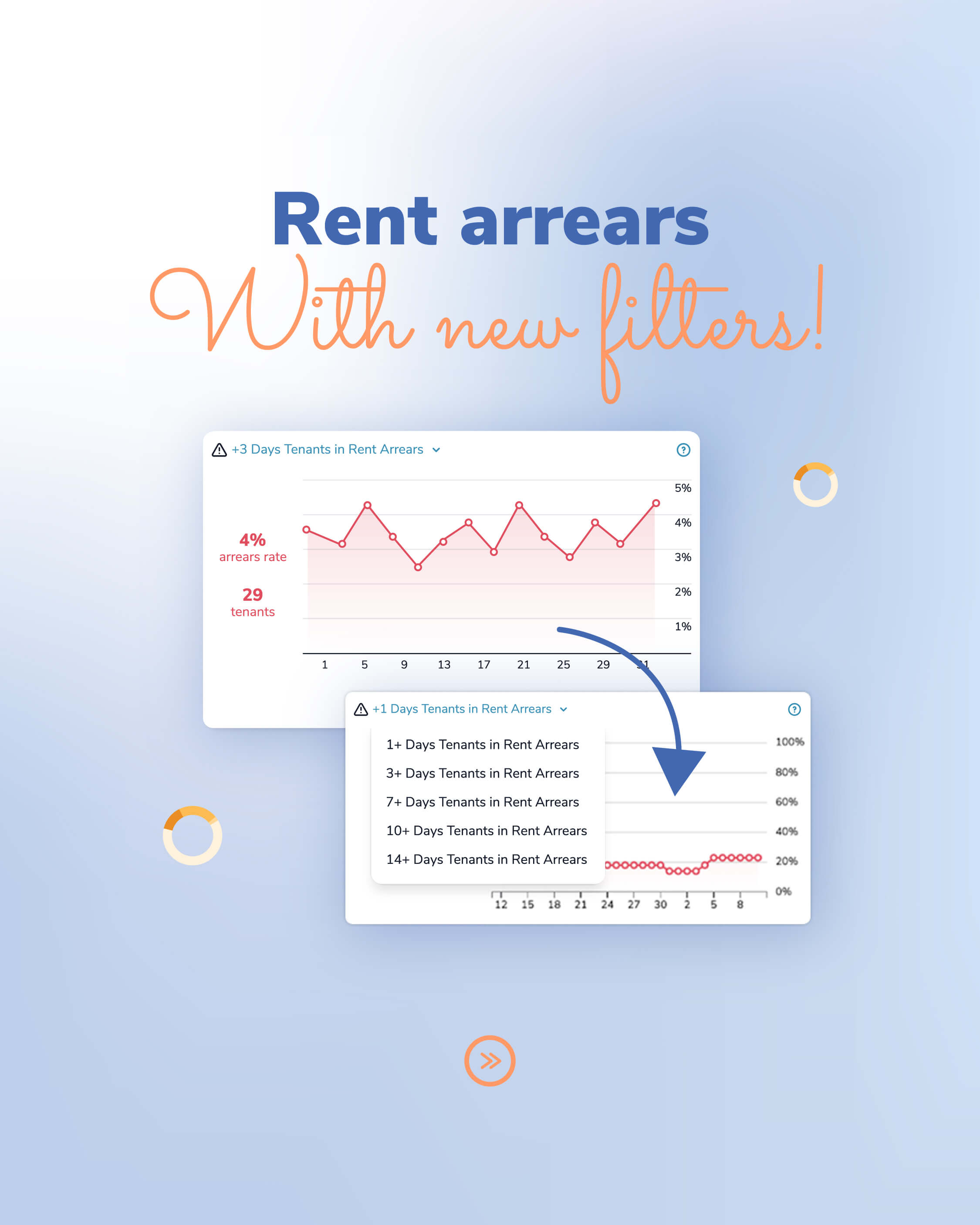 Widgets such as Rent Arrears, Vacancies and Jobs now include a dropdown filter, allowing you to target a specific set of metrics. You can also change the default while customising your dashboard.