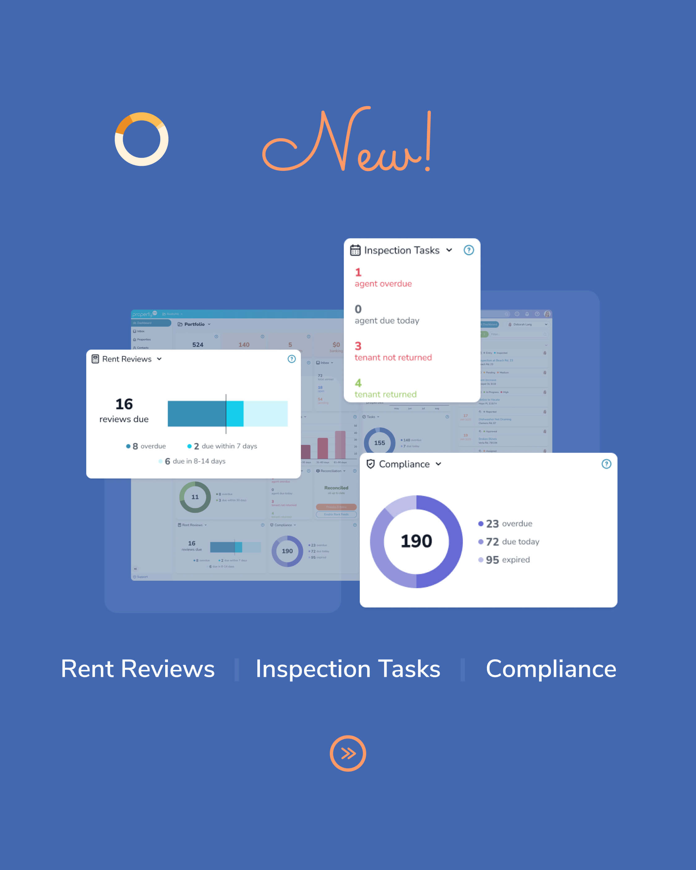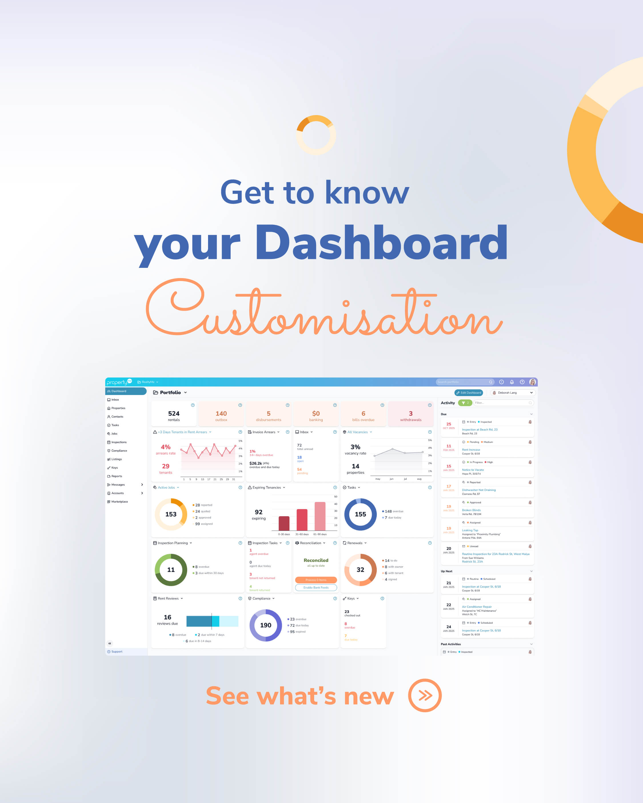 We have added two new widgets to the Dashboard: Rentals, Renewals and Inbox, along with additional metrics on some existing widgets including Rent Arrears, Jobs, Vacancies, Keys and Inspection Planning.