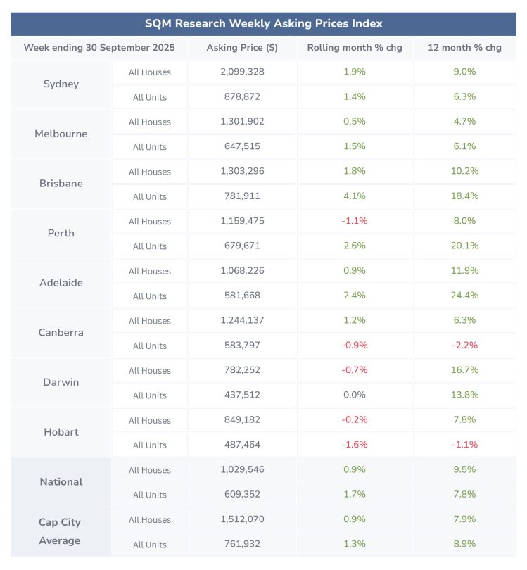 National asking prices continued to rise in the week ending 30 September 2025, suggesting strong confidence among sellers.