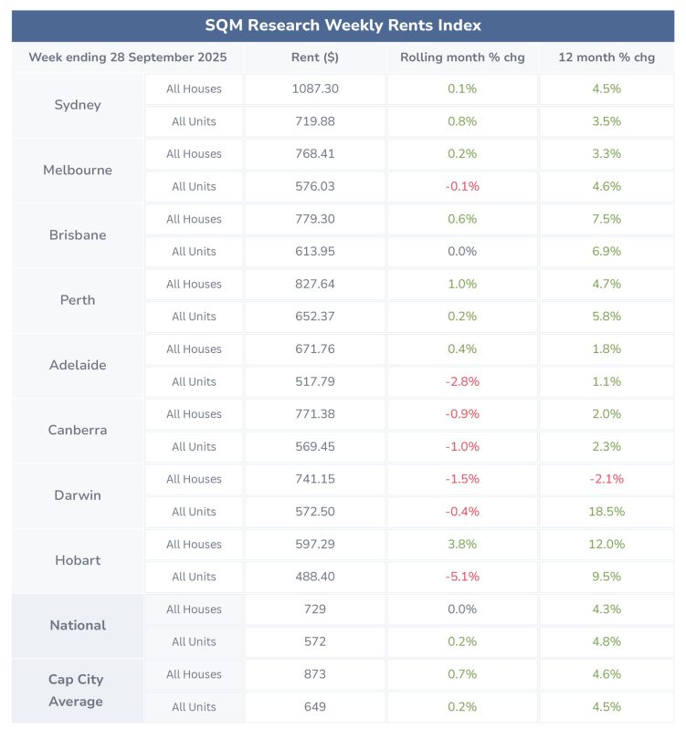 Nationally, advertised weekly rents for units grew faster than house rents in the 30 days to 28 September 2025.
