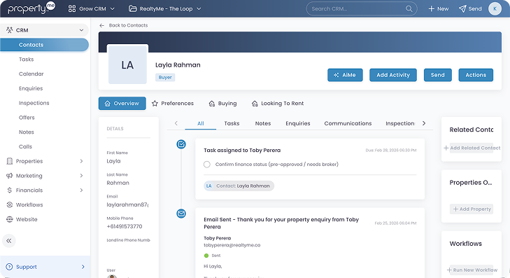 PropertyMe's Grow CRM helps real estate agents close more deals and manage clients with ease.