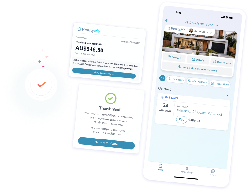Tenants can pay using PayTo or PayID through the PropertyMe app. They can set up recurring payments or make one-off payments when needed. Once it’s set up, paying rent is straightforward and familiar.